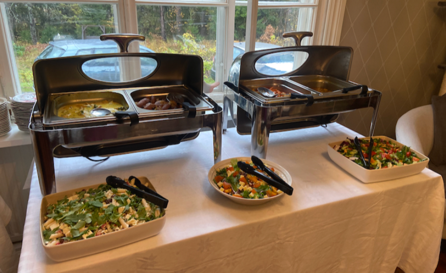 Ruokailuista sovitaan tilaajan toiveiden ja tilaisuuden luonteen mukaan. Taloon voi tuoda joko oman kokin tai ruoka on mahdollista tilata kauttamme catering-palvelusta. Yksityismajoitukseen tulijalla on vapaus käyttää keittiötä omaan kokkaukseen.
